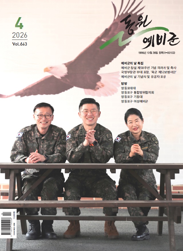 예비군의 날 특집 006 제58주년 예비군의 날 대통령 축하메시지008 국방부장관 축하메시지010 육군참모총장 축하메시지012 예비군의 날 기념식 / 유공자 포상014 2026년 모범예비군018 육군 제52보병사단 -인터뷰- 026 영등포대대 034 영등포구 통합방위협의회 040 ..